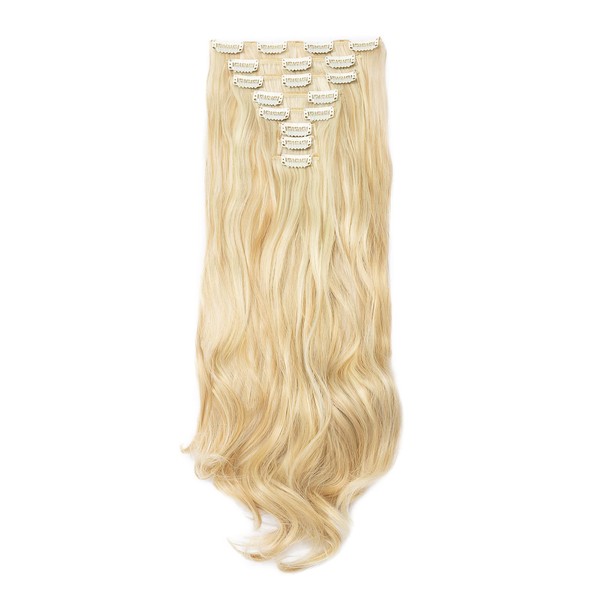 Cybelleza Clip-In Extensions 8-Piece Set Hairpiece Hair Extensions Wavy Hair Thickening Like Real Hair Synthetic Hair Curly Wavy Hair Voluminous Heat Resistant Long Dark Blonde & Bleach Blonde