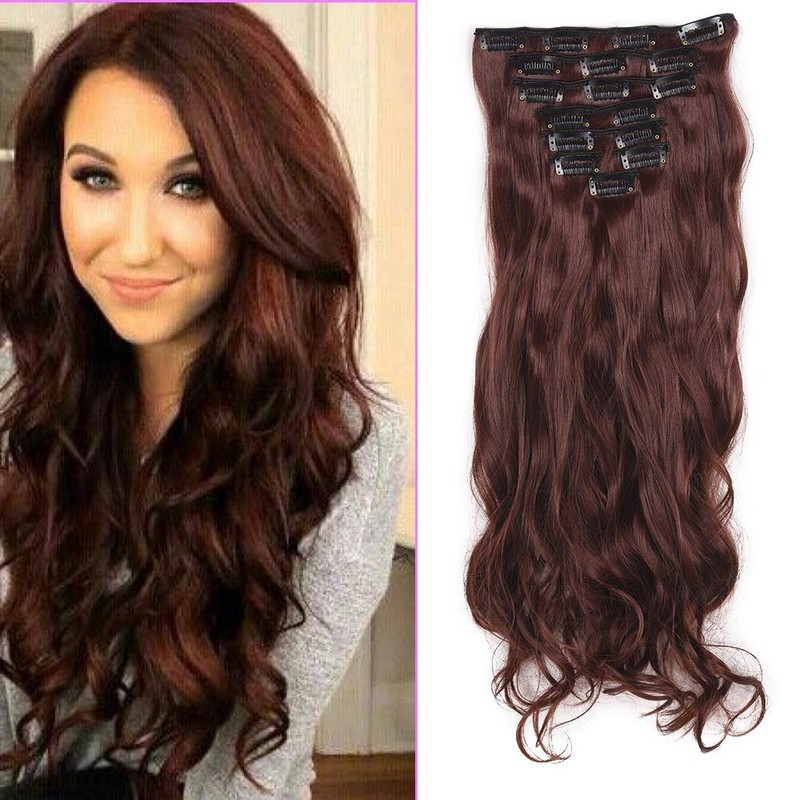 Cybelleza Clip-In Extensions 8-Piece Set Hairpiece Hair Extensions Wavy Hair Thickening Like Real Hair Synthetic Hair Curly Wavy Hair Voluminous Heat Resistant Long Dark Chestnut Brown