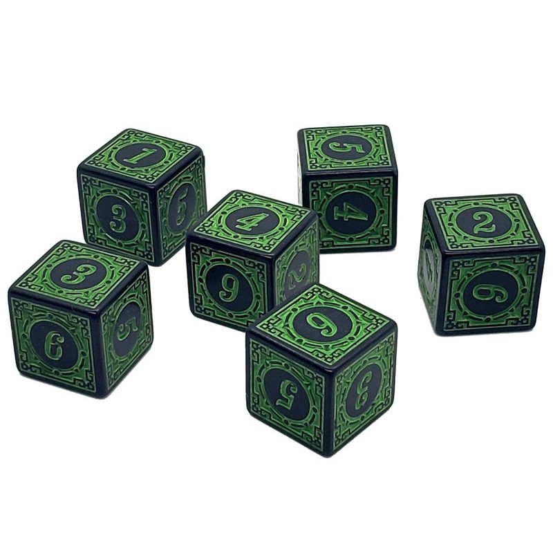 Cyber-Deals Set of (6) 16mm Dice 6-Sided D6 Numeral 1-6 Sides Squared Corners ... Plus Black Velvet Cloth Pouch Bag (Green)
