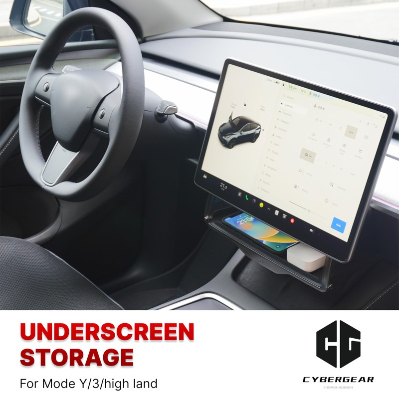 CyberGear Hidden Under Screen Storage Compatible with Model Y/3/High Land Open and Close Easy Install Organizers Accessories for Center Console Hidden Shelf Caddy Holder
