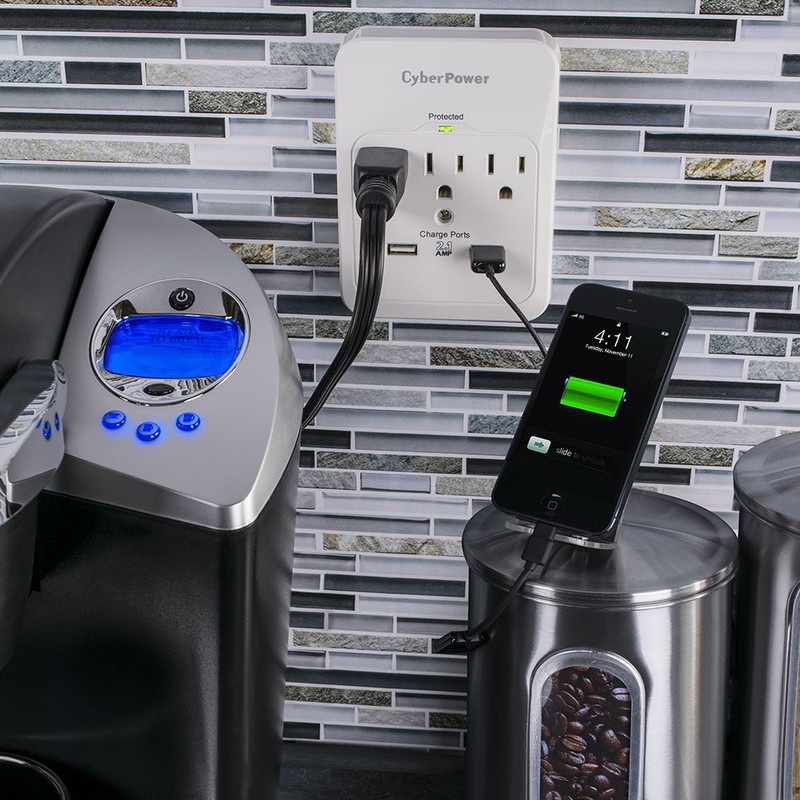 CyberPower CSP300WUR1 Professional Surge Protector, 600J/125V, 3 Outlets, 2 USB Charge Ports (2.1 Amps Shared) Wall Tap Plug