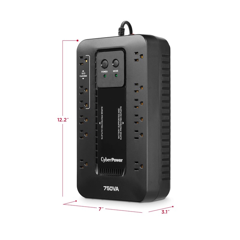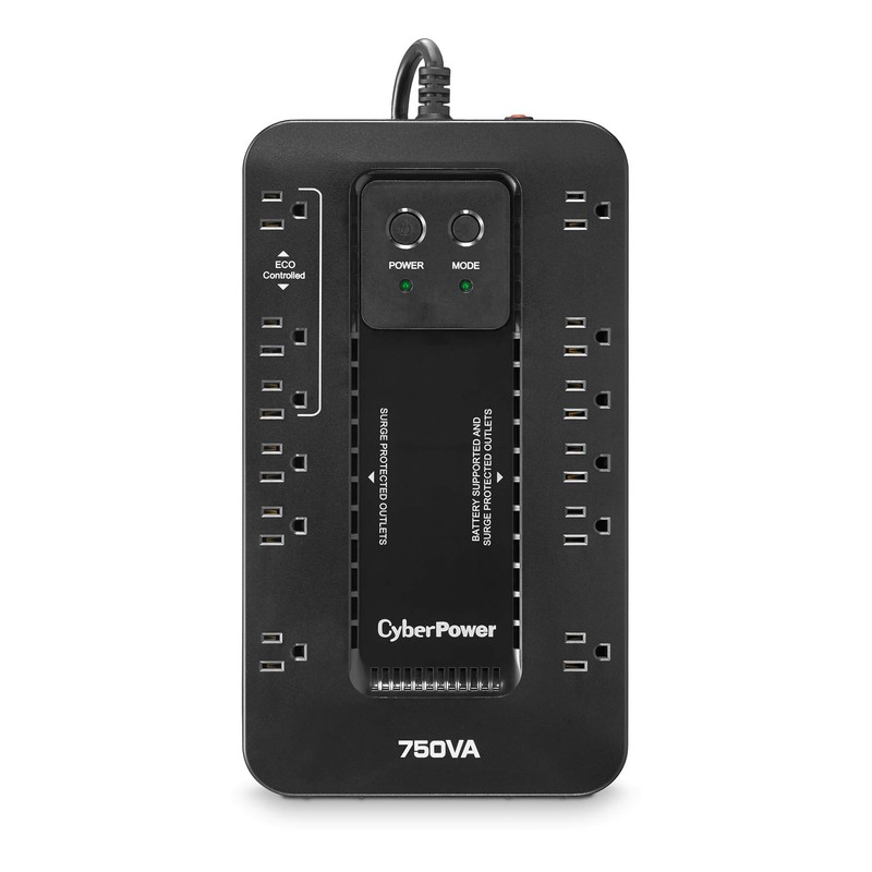 CyberPower EC750GTAA Ecologic Battery Backup & Surge Protector UPS System, 750VA/450W, 12 Outlets, ECO Mode, Compact Uninterruptible Power Supply, TAA Certified