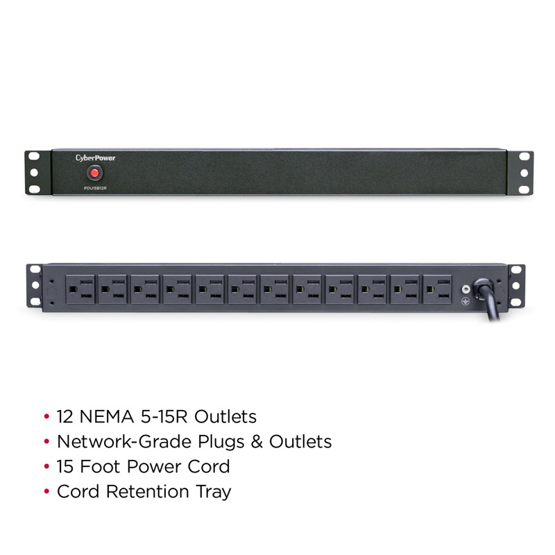 CyberPower PDU15B12R Basic PDU, 100-125V, 15A (Derated to 12A), 12 Outlets, 1U Rackmount