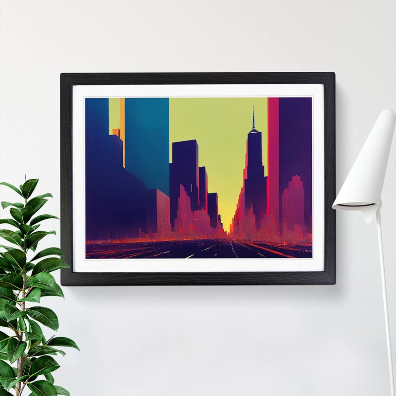 Cyberpunk New York Skyline Vol.3 H1022 Framed Print for Living Room Bedroom Home Office Décor, Wall Art Picture Ready to Hang, Black A4 Frame (34 x 25 cm)
