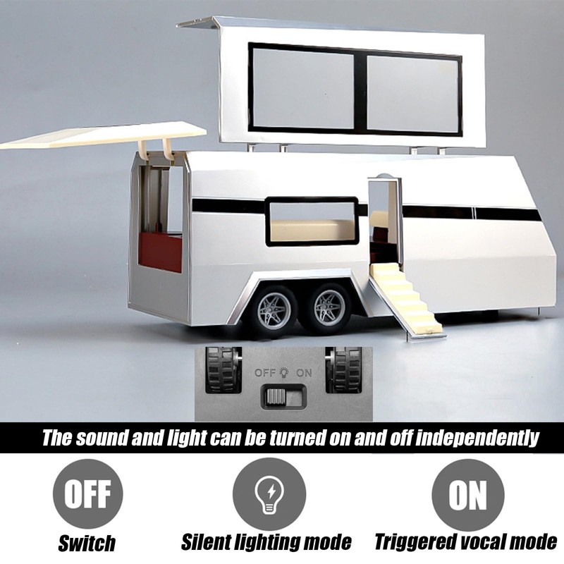 - Rich Movable Details: The doors, front hood, and all the doors of the pickup truck and the camper can be opened. The rear cargo door of the pickup truck can be raised, folded, and covered with the cargo cover, featuring realistic details