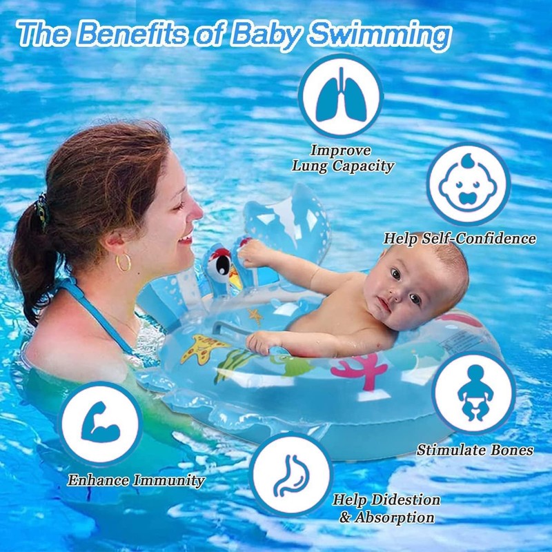 - 👶🏻[Baby Inflatable Seat Swimming] We specially designed the baby seat to effectively reduce the center of gravity and prevent the baby from slipping or turning over when swimming. The baby swimming ring has an enlarged size of the baby's leg entry into the seat ring, which makes the baby feel more comfortable. Our pool inflatables baby swimming float with a safety seat, inflatable double airbags to protect the baby's bottom bring an ideal swimming position comfortably.