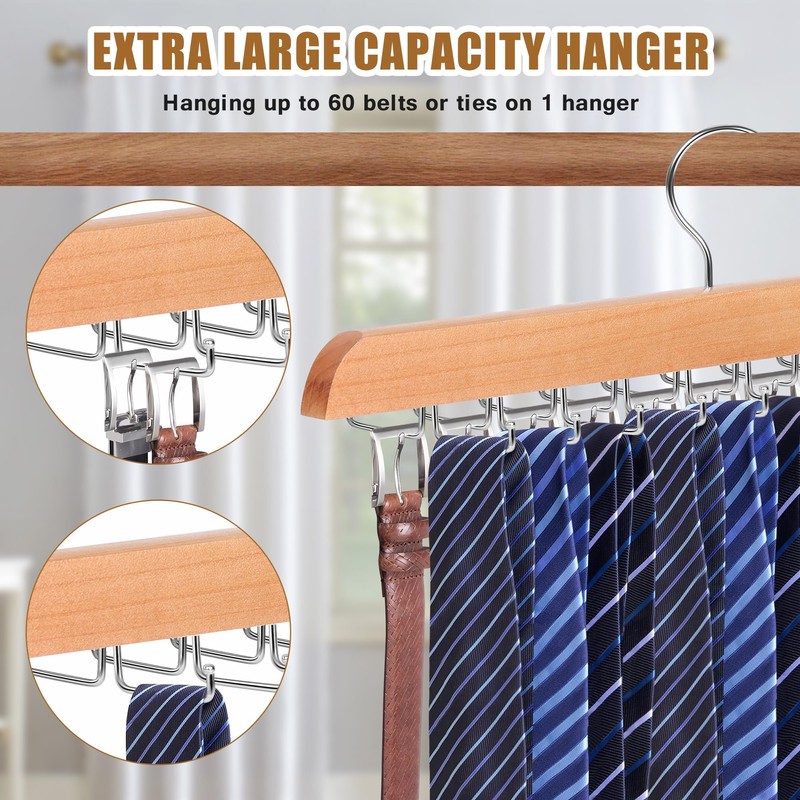 - 【HIGH-QUALITY MATERIALS】The belts rack constructed from natural hardwood with a smooth varnished finish, it feels comfortable and looks high-quality. Even better, it is durable and can last you lifetime