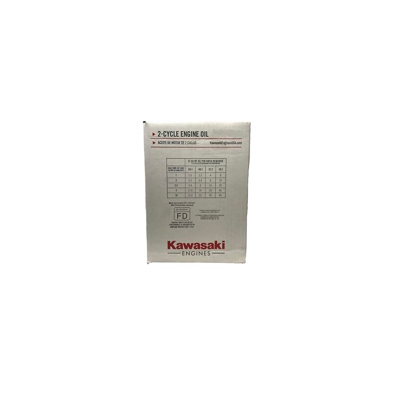 - COMPATIBILITY AND CONVENIENCE: 50:1 mix with 10 gallons of gasoline. Synthetic Blend with fuel stabilizers. Low smoke. For use in all engines where API and JASO FD oil is recommended, Kawasaki 2-cycle engine oil is a synthetic blend that meets and exceeds the rigorous requirements of API TC, JASO FD and ISO EGD classifications for 2-cycle air-cooled small engine applications.