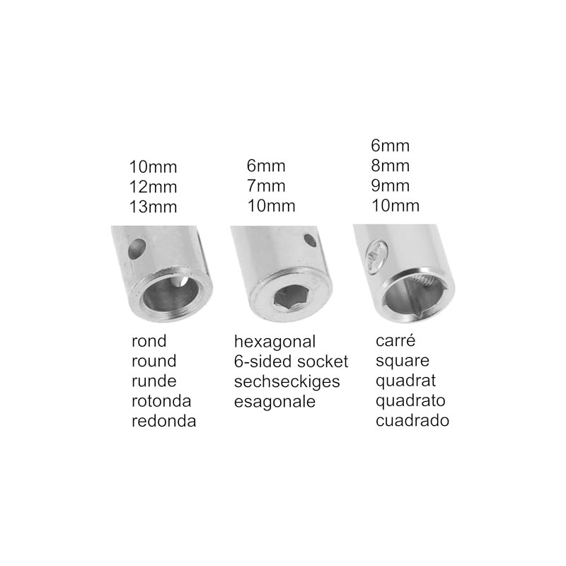 - Universal or toggle joint for roller shutters, made of nickel plated steel, with a 6mm hex socket and a 13mm internal round input.