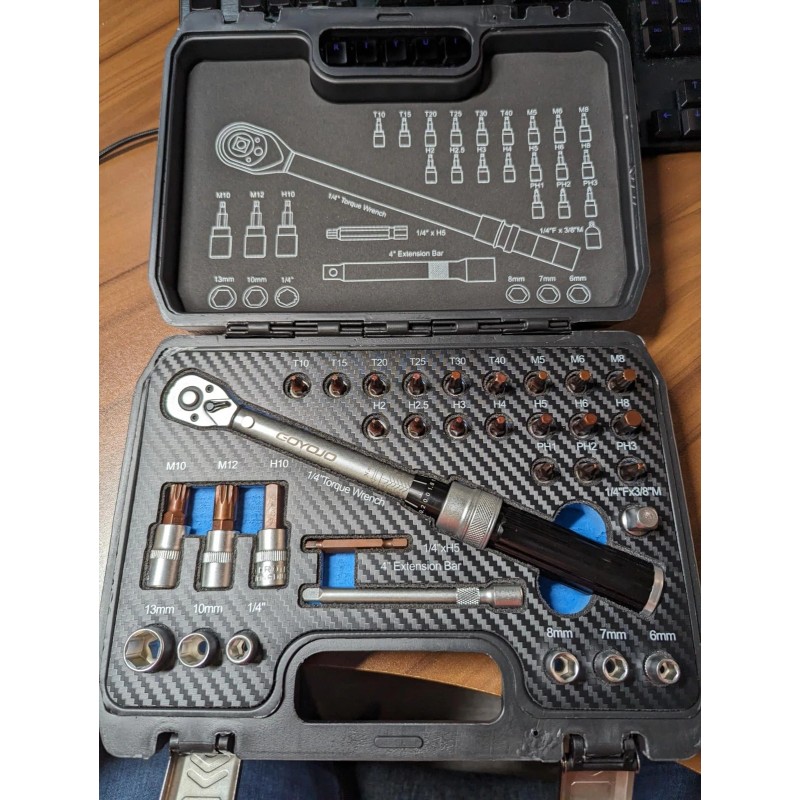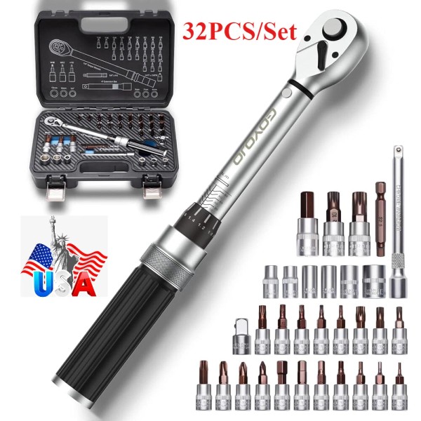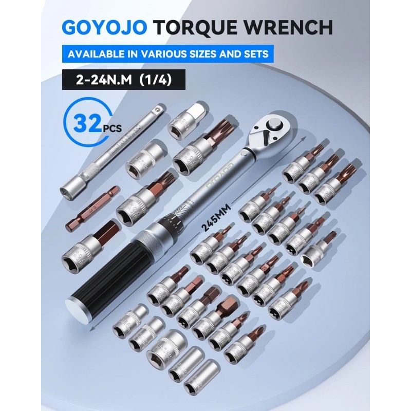GOYOJO 32-Piece Torque Wrench Set, Chrome Vanadium Steel, 2-24 N.m - Includes 1/4" & 3/8" Sockets, T10-T40, M5-M8, H2-H8, PH1-PH3 Bits, 1/4" 4-Inch Extension - Versatile for Automotive, Cycling & DIY…