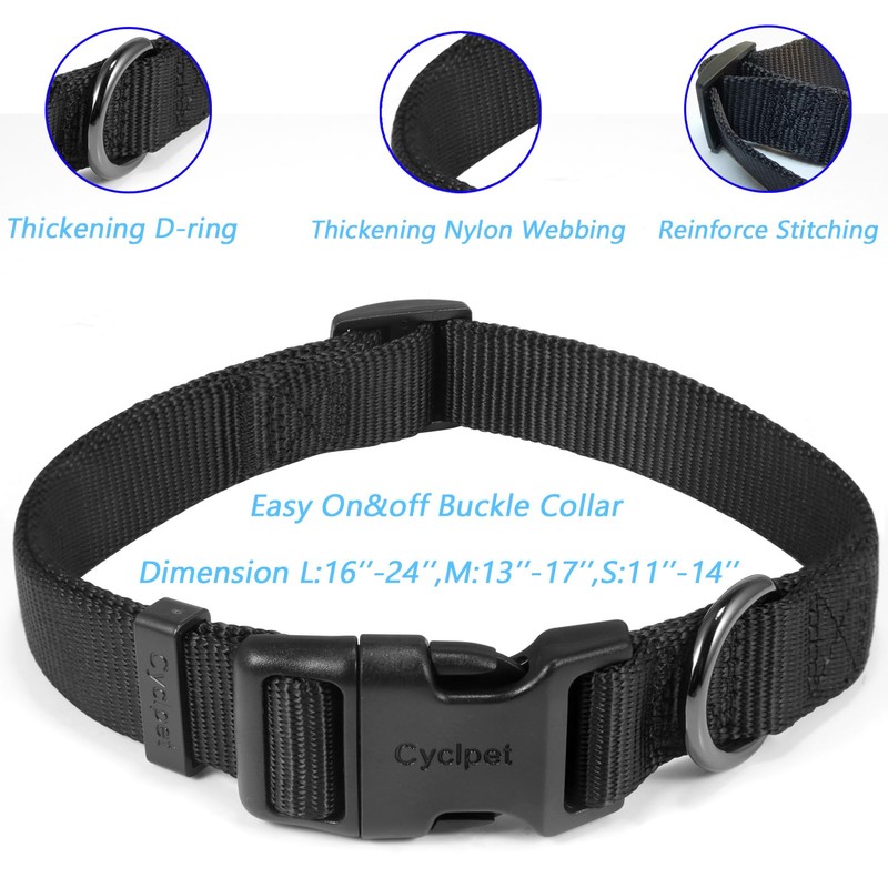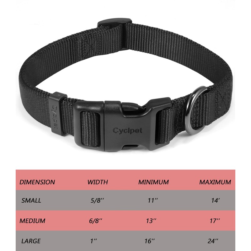 Cyclpet premium classic dog collar made of high-quality heavy duty metal hardware D-ring and sturdy durable nylon webbing.
