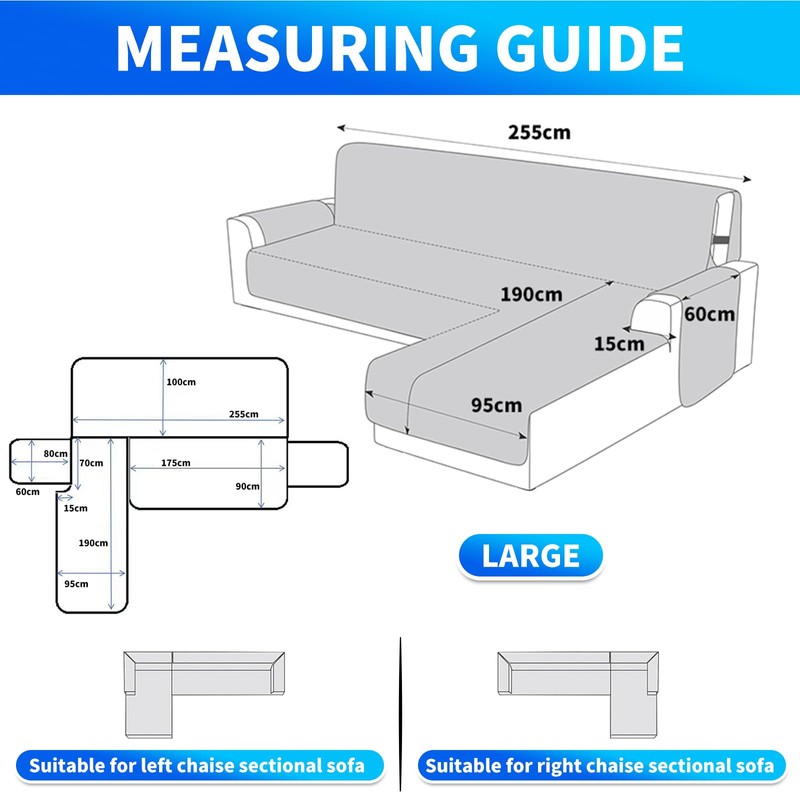 - Sofa cover L-left and right can be locked: CYCMACO sofa cover corner sofa can be folded left or right for use. Whether the sofa half insula is on the left or right side, you do not have to worry about wrong alignment. And our L-shape sofa cover is available in three sizes and different colours, so it fits easily into any style and fits perfectly with your sofa.