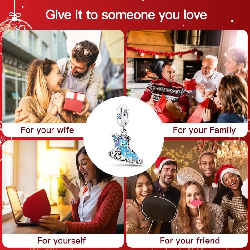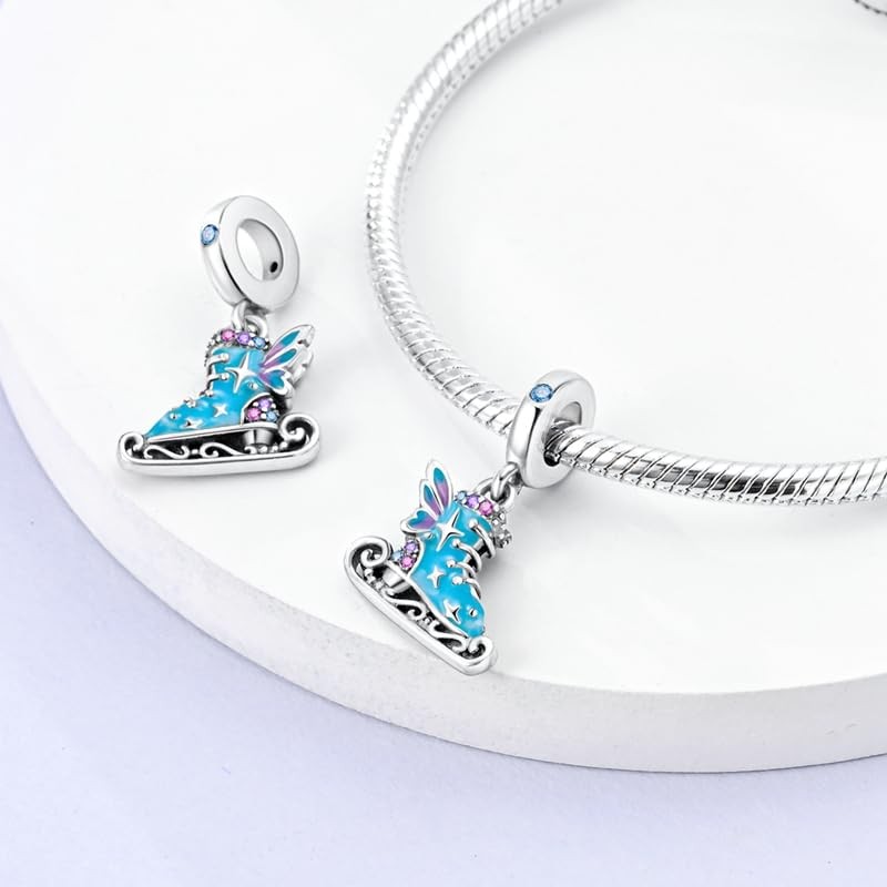 CYCUFF 925 Sterling Silver Charms Suitable for Bracelet Pendants Beads, Charm Necklaces Jewellery Gift for Women Family Friends (Figure Skate Charm)