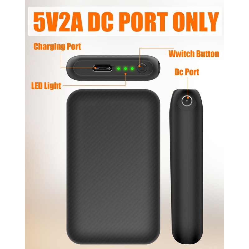 - đ ăPORTABLE & MINIăThis 5V2A battery pack is mini-sized (2.6x1.7x0.7 in), super lightweight (Each 0.11 lbs), and easy to carry. Perfect for travel, this portable charger, weighing only 50 grams, fits effortlessly into pockets, bags, handbags, or backpacks.