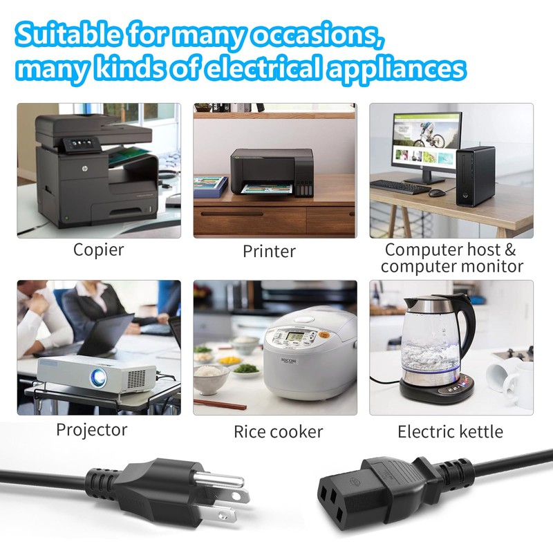 - 【4FT(1.2M) 3 Prong Power Cord Specification】Voltage&Amps: 10a 125v Power Cord, Connector: IEC-60320 (IEC320) C13 to NEMA 5-15P, Jacket Material: PVC, Color: Black, Temperature Range: 2℃ to 70℃. Ideal solution for replacing old power cords that are lost or worn, providing a safe and stable power supply for your Pressure Cooker, Rice Cooker, Soy Milk Maker, Slow Cooker, and other electronic devices.