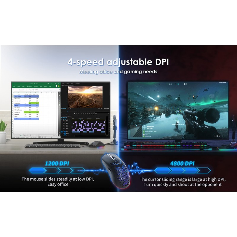- CYD Wired gaming mouse extra functions have some advanced functions, gaming mouse with side buttons that allow smooth and comfortable gaming and facilitate gaming without much movement interruptions. 4 adjustable DPI levels 1200/2400/4800/7200, CYD Mouse gaming functions ensure smoother and uninterrupted movements while playing.