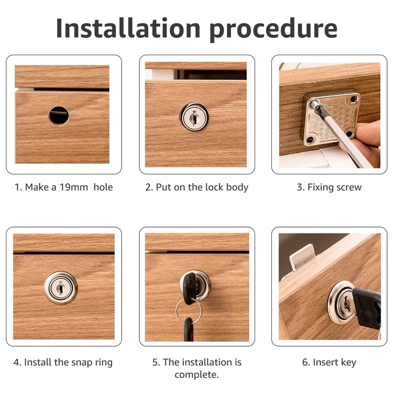 - Easy to install: After punching holes in the furniture according to the size of the cupboard locks, you can easily fix the safe lock using the mounting screws in the package and install the catch to prevent movement