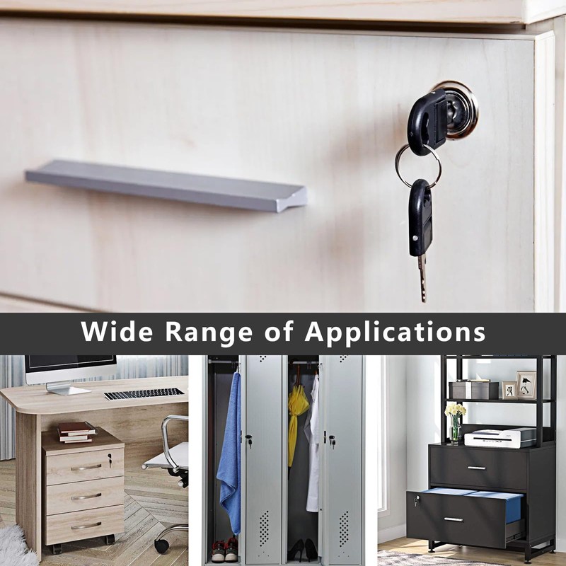 - Wide range of application: Cabinet lock with key is suitable for drawers, cabinets, mailboxes, desks, doors, dressing tables, etc. It not only protects your important items, but also protects your children from dangerous items, perfect for use at work, at home and on the go