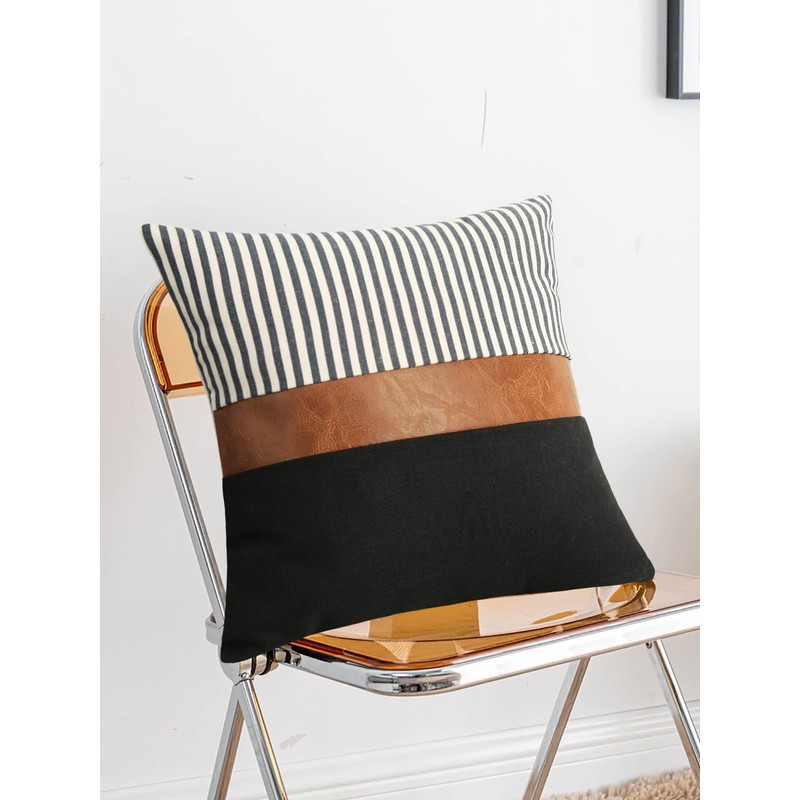 - Chic and Trendy Design-- Featuring vertical three-piece fine line cognac brown faux leather stripes, these decorative pillow covers offer a sophisticated blend of modern and classic styles, perfect for elevating your farmhouse decor.