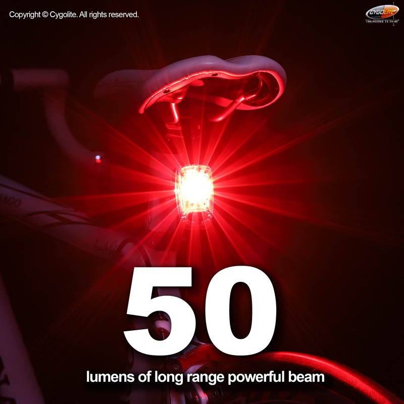 - Powerful USB rechargeable 50 lumen bicycle taillight