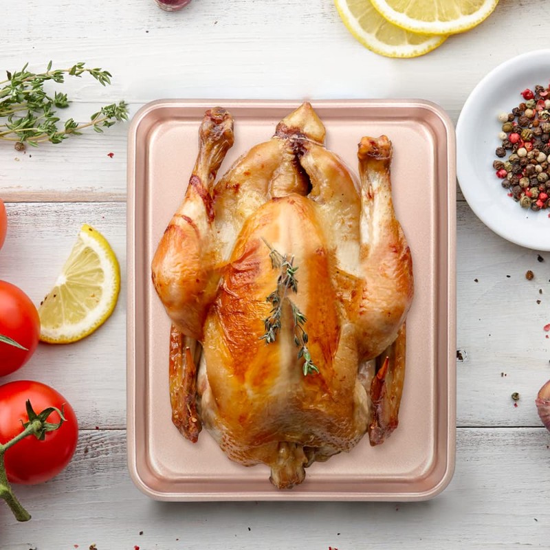• VERSATILE COOKIES PANS SET: Toaster oven pans are a versatile kitchen essential that will meet all your daily baking. Use them to make a variety of delicious treats, including butter cookies, chiffon cake, bread, pizza,ribs, roasts, turkey, and more. Baking tray is also a perfect size for baking cookies, pastries, lasagna,jelly rolls, pumpkins, chicken and vegetables.