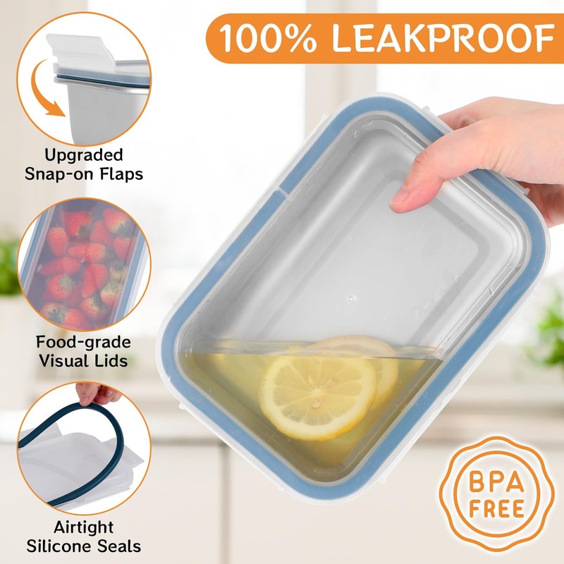 - 🥗 100% LEAK PROOF - AIR TIGHT – BPA-FREE : The upgraded snap-on lids with a silicone sealing ring are better to preserve freshness and prevent food from leaking and spilling.The premium quality plastic is crystal clear to identify your food easily.The BPA-free and reusable material assures you a healthy food mile