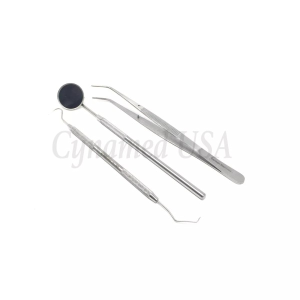 Cynamed Basic Dental Instruments Set Mouth Mirror Explorer #5 Cotton Plain Plier German