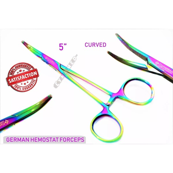CYNAMED CURVED MOSQUITO FORCEPS 5" HEMOSTAT MULTI-COLOR GERMAN HIGH GRADE STAINLESS