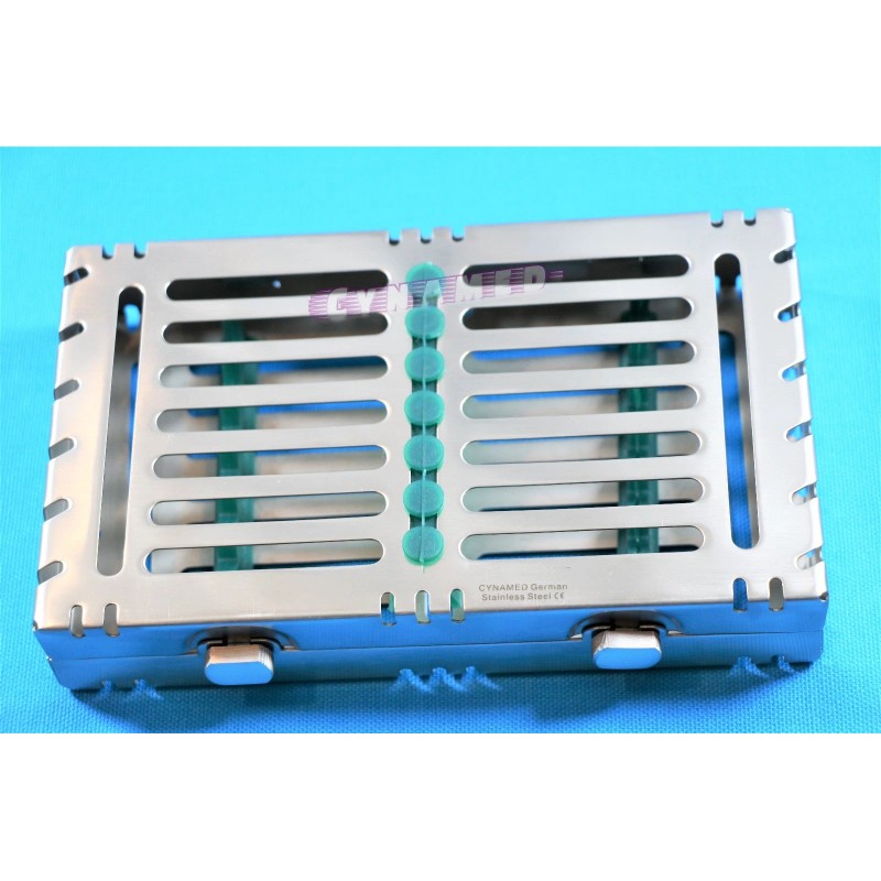 1 GERMAN STAINLESS STERILIZATION CASSETTE WITH DOUBLE BUTTONS FOR 7 INSTRUMENTS GREEN