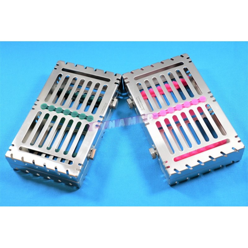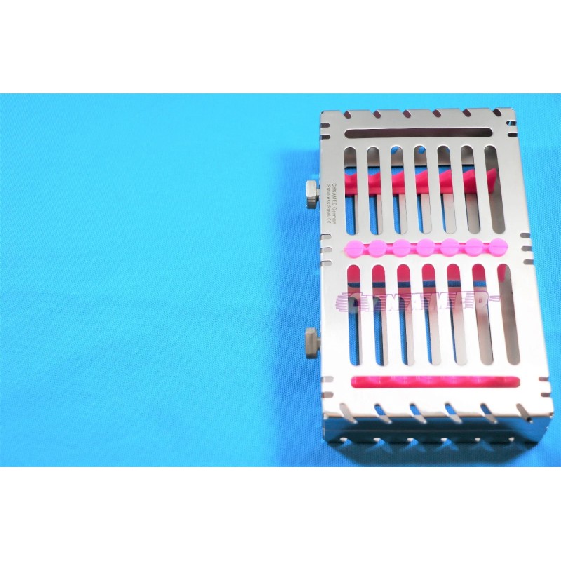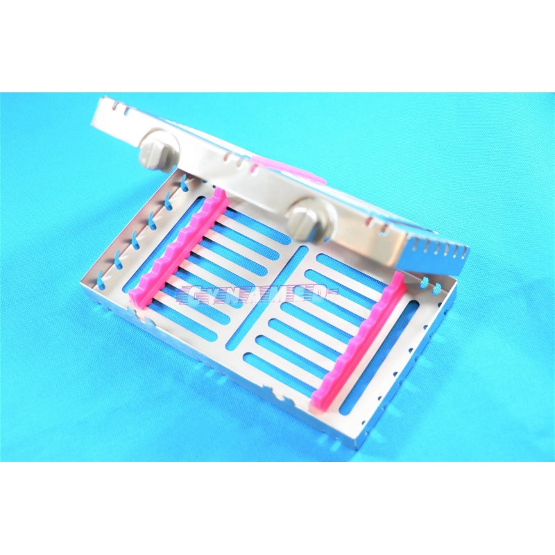 1 GERMAN STAINLESS STERILIZATION CASSETTE WITH DOUBLE BUTTONS FOR 7 INSTRUMENTS PINK