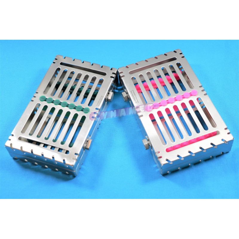 CYNAMED LOT OF 2 GERMAN DETACHABLE STERILIZING CASSETTE TRAYS HOLDS 7 INSTRUMENTS