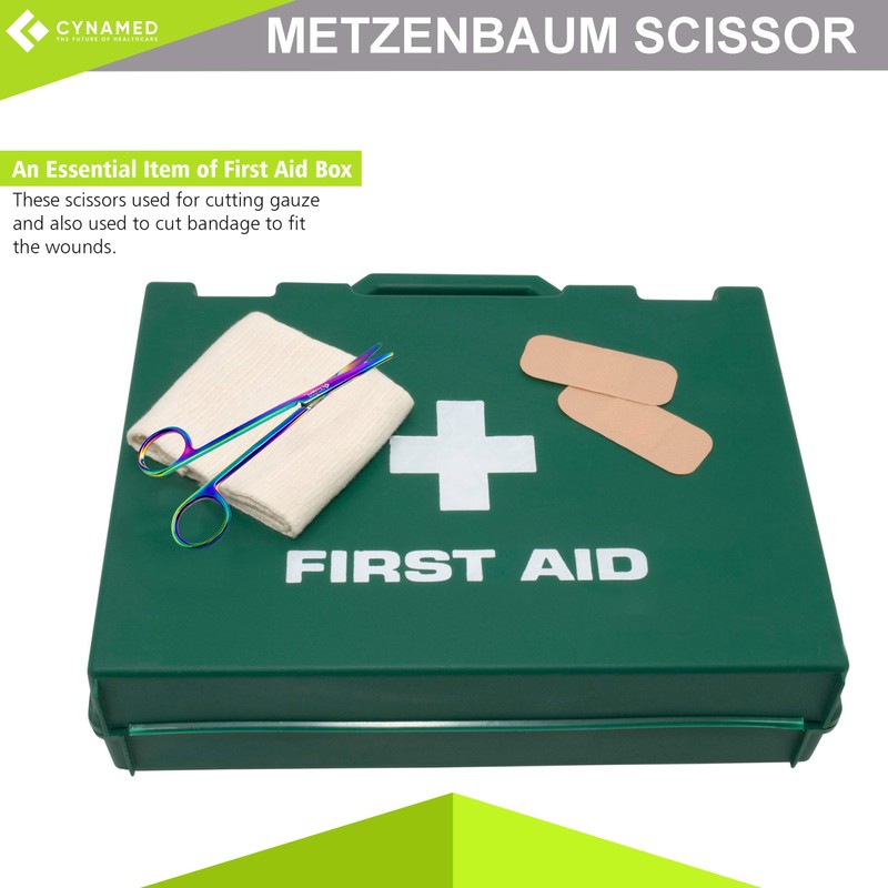 Cynamed Metzenbaum Set of 2 Dissecting Scissors with Multicolor/Rainbow Titanium Coating - Long, Slim (7 in. - Straight and Curved)