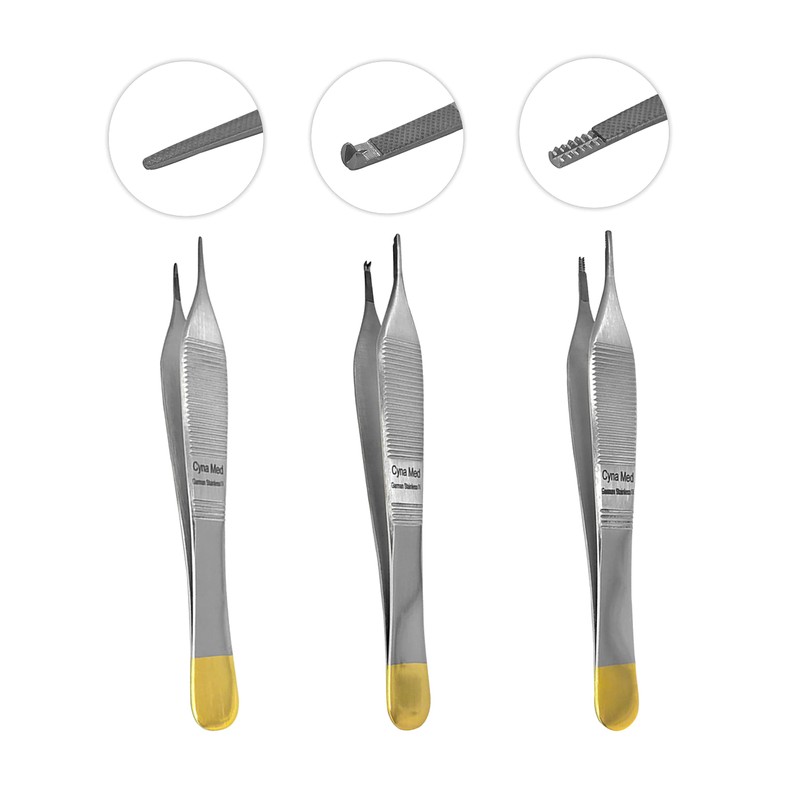 Cynamed T/C Adson Plastic Surgery Forceps 4.75" Straight Fine Point with Tungsten Carbide Inserts Surgical Veterinary Instruments with Gold Handle (9X9 Teeth, Adson Brown Forceps, TC)