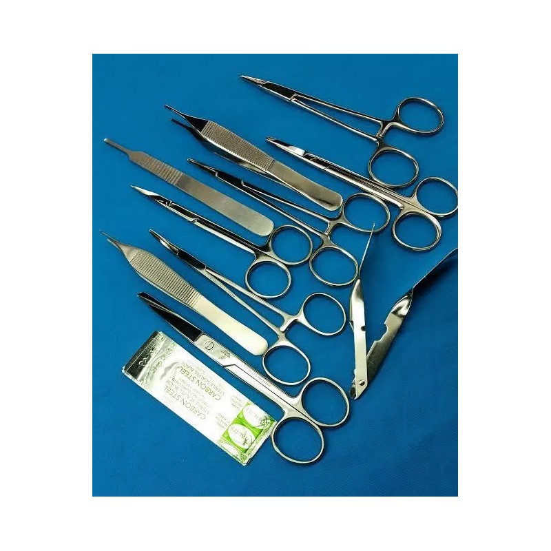 OUR SURGICAL INSTRUMENTS ARE GMP,CE AND ISO 9002 CRTIFIED WHACH IS A SIGN OF PREMIUM STANDARD AT HIGHEST LEVEL. SAME AS PICTUREEXCELLENT QUALITY SET OF 15 ITEM: SET OF 10 PCS SUTURE LACERATION MEDICAL STUDENT SURGICAL INSTRUMENTS SET KIT+5 BLADE #11 CONDITION: BRAND NEW TYPE: SURGICAL STAINLESS STEEL QUANTITY: 15 EACH . SET INCLUDES : 1 EA IRIS SCISSORS STRAIGHT 4.5'' 1 EACH Dressing operating scissors sharp blunt 5.5" 1 EA WEBSTER NEEDLE HOLDER 5" 1 EA ADSON TISSUE RAT TOOTH FORCEPS 1X2T 4.75" FINE POINT 1 EA ADSON DRESSING FORCEPS 4.75" FINE POINT 1 EA MOSQUITO FORCEPS STRAIGHT 5" STRAIGHT 1 EA MOSQUITO FORCEPS 5" CVD 1 EA STITCH SUTURE SCISSORS 4.5'' 1 EACH SKIN STAPLE REMOVER 1 EA SCALPEL HANDLE #3 5 STERILE SURGICAL BLADE #11 FOR HANDLE # 3 AN EXCELLENT ITEM. 100% SATISFACTION GUARANTEED. BUY WITH COMPLETE CONFIDENCE. IF YOU ARE ORDERING MORE THAN ONE ITREM OR AUCTION, PLEASE WAIT FOR AN INVOICE SO WE CAN COMBINE YOUR SHIPPING CHARGES CORRECTLY. SHIPPING CHARGES ARE NON REFUNDABLE. ALL ITEMS RETURNED MUST INCLUDE AN ORIGNAL PACKING MATERIAL. SHIPPING: THE ITEM WILL BE SHIPPED WITHIN 1-2 BUSINESS DAYS AFTER PAYMENT IS RECEIVED. FEEDBACK POLICY: YOUR FEEDBACK IS VERY IMPORTANT FOR US, IF THEIR IS ANY KIND OF PROBLEM PLEASE GIVE US OPPORTUNITY TO SORT THE ISSUE. "The sale of this item may be subject to regulation by the U.S. Food and Drug Administration and state and local regulatory agencies. If so, do not bid on this item unless you are an authorized purchaser. If the item is subject to FDA regulation, we will verify your status as an authorized purchaser of this item before shipping of the item." Contact: Avon Surgical Woodbridge, Virginia, USA (941)787-0786