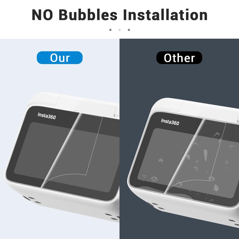- Insta360 GO 3 Accessories : 2.5D rounded edges for a smooth feel. Enjoy a hassle-free installation experience with the bubble-free adhesive and precise cutouts, allowing for seamless application onto your Insta 360 GO 3 's screen.