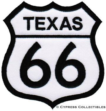 Cypress Collectibles Inc. TEXAS ROUTE 66 EMBROIDERED PATCH - IRON-ON APPLIQUE Highway Road Sign Biker
