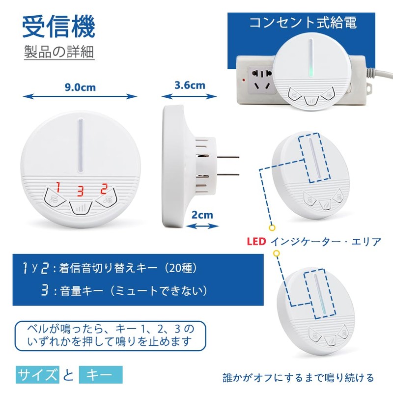 • Easy to Use: Simply press the watch / button once and the receiver will continue to ring. Unless you press the key on the receiver, the LED on the receiver will flash and continue to ring the call. This product is easy to use and is suitable for the elderly and children, and it is not easy for caregivers to miss out on their voice