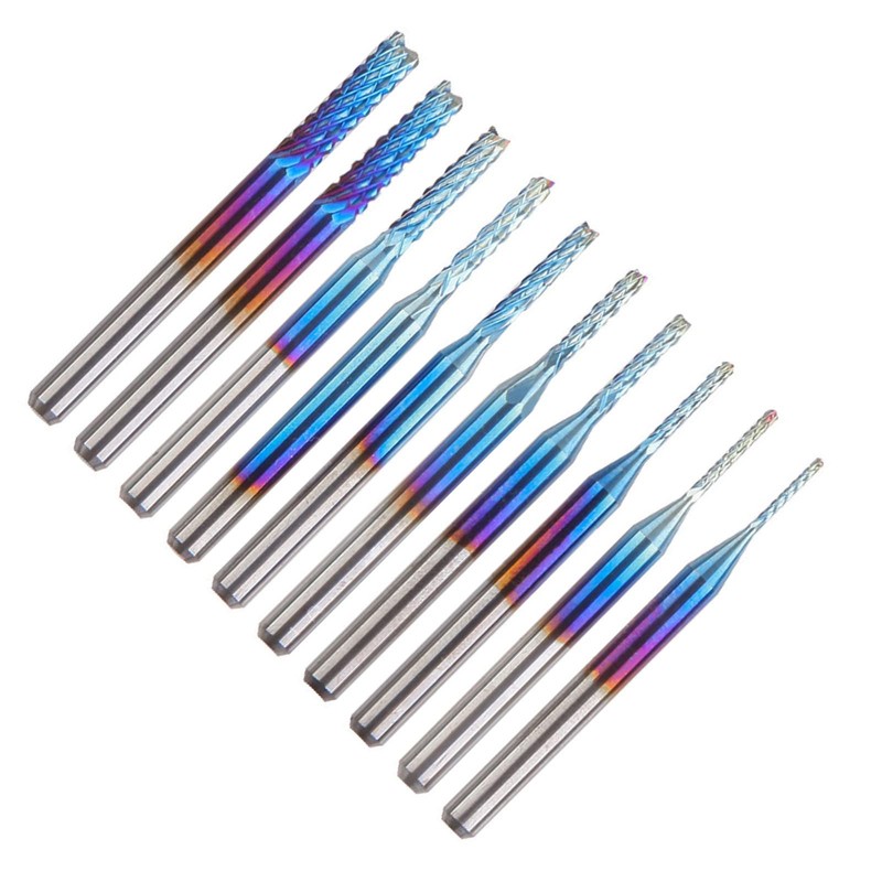 CYTGOUPER 10 Stück 0,8–3,175 mm Präzisions Fräserhub, Hochfeste Wolframstahl Schaftfräser für Edelstahl, Cnc Fräser mit Aufbewahrungsbox zum Gravieren, Schneiden und Fräsen