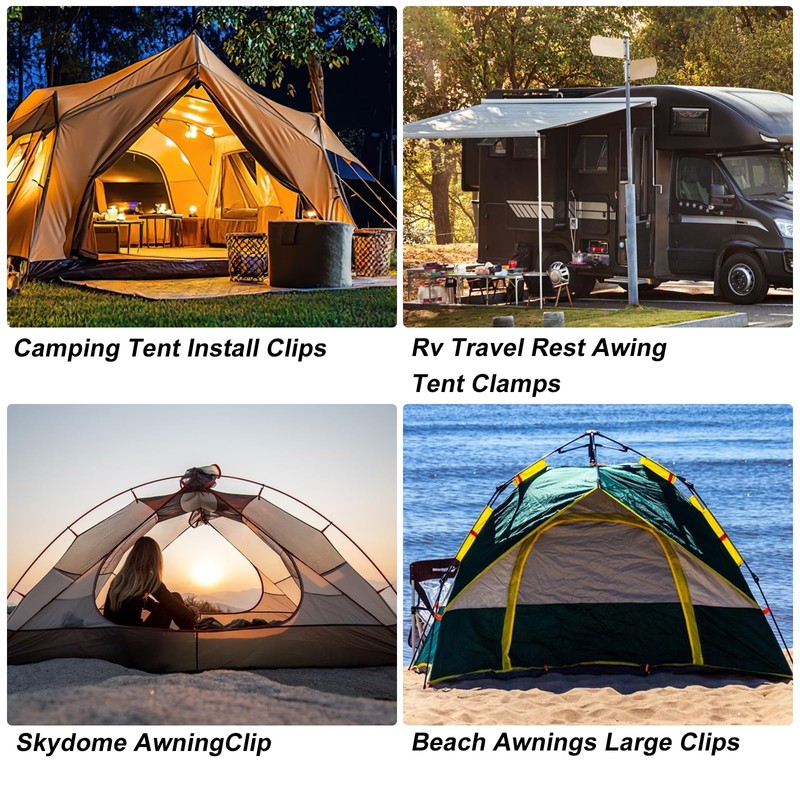 - 4. 【Superior Anti-Slip Design】- Equipped with unique shark teeth jaws, these clips securely grip thick fabrics like truck tarps and construction sheets, while the wide jaw accommodates edges, ropes, or poles for added security. Perfect for use with camping tents and RV awnings