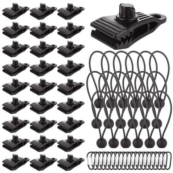 - Can be used as tent clips, tent clamps, tarp tie-down clips, tarp holders, tarp fasteners, tarp clips with bungee, car cover clamps, tarp fasteners, tarp clips camping, tarp ball bungee cords, shark tarp clips, camping awning clips.