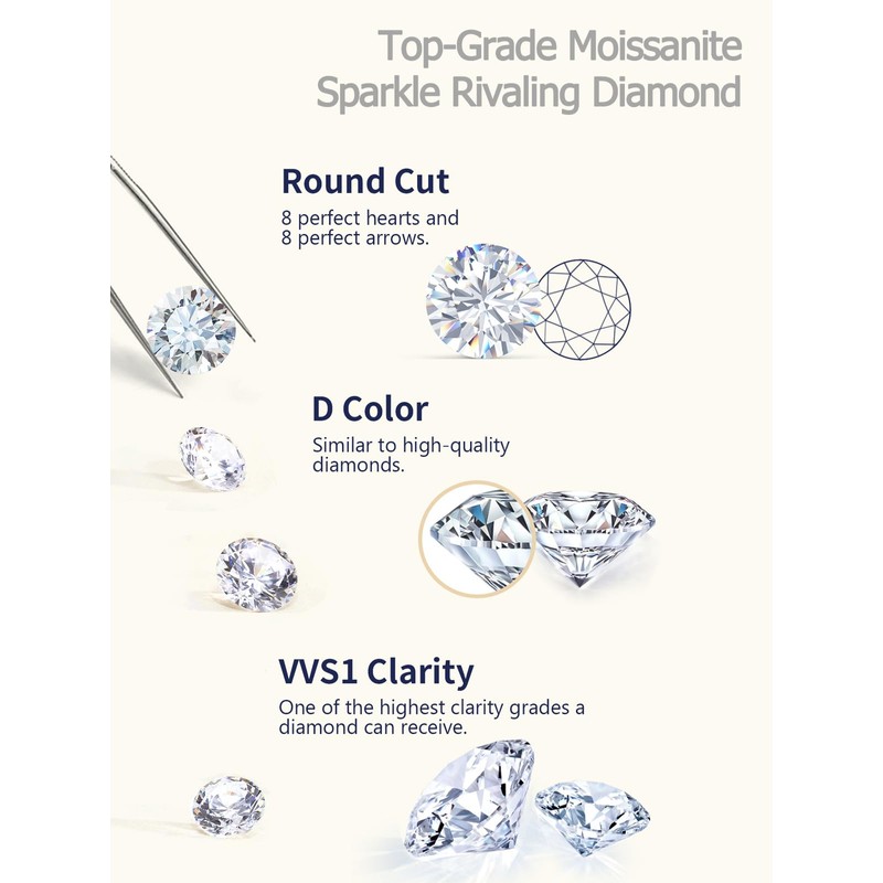 - 【Meticulously Crafted】 Made of 925 Sterling Silver with Rhodium Finish, Hypoallergenic, Safe for Sensitive Skin, Adopted Upgraded and Excellent Polished Craftsmanship, Super Shiny and More Durable. Each Moissanite has been Carefully Selected, All of Them are D color VVS1 Clarity.