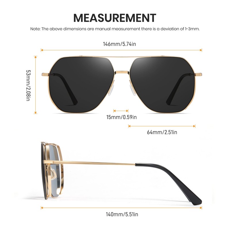 - 60MM SUNGLASSES POLARIZED - Cyxus men's aviator sunglasses polarized is designed with UV400 protection layers and scratch-resistant coatings, effectively filter and block glare, protect eyes from 100% UVA/UVB radiation, reduce eye strain, optimizing visual clarity in different light conditions