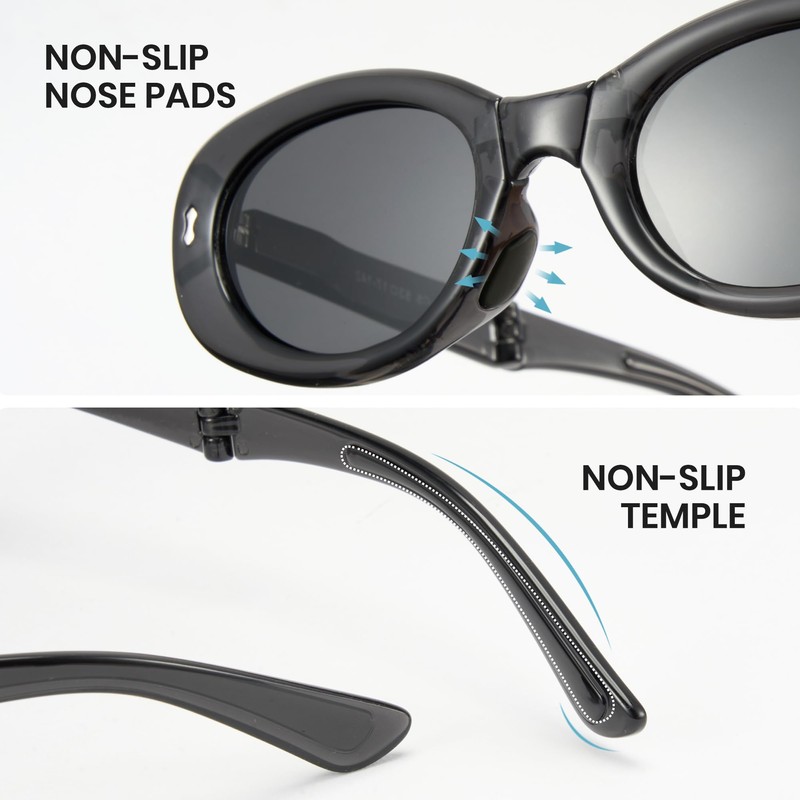 - Polarized Lens: Polarised sunglasses use advanced polarisation technology to effectively eliminate glare and reflections, enhancing visual clarity and comfort. Especially suitable for use in bright light or water reflective environments, providing a clear visual experience for your outdoor activities.