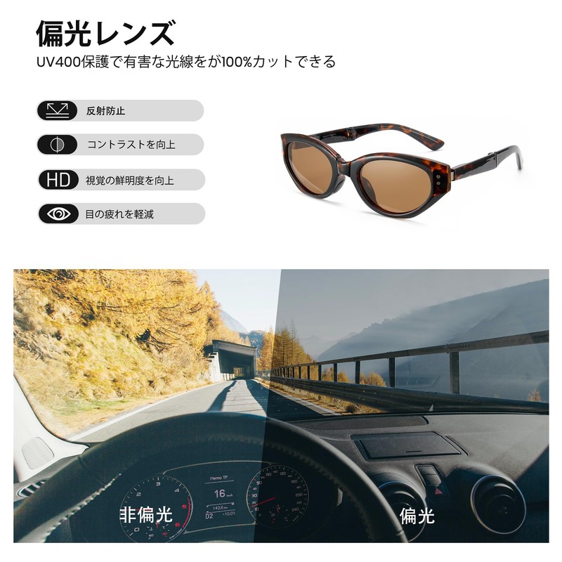 Cyxus P1181 Folding Sunglasses, Polarized Lenses, UV Protection, Small Face Effect, Ultra Lightweight, For Fishing, Driving, Climbing, Sports, Fashionable, 02-Tortoise