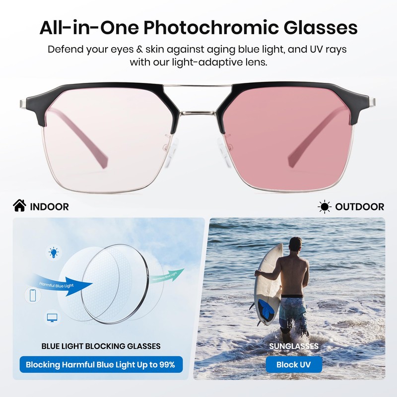 - Photochromic Lenses for Any Light: Smart lenses automatically adjust to changing light conditions, ensuring clear vision indoors and outdoors while reducing eye strain