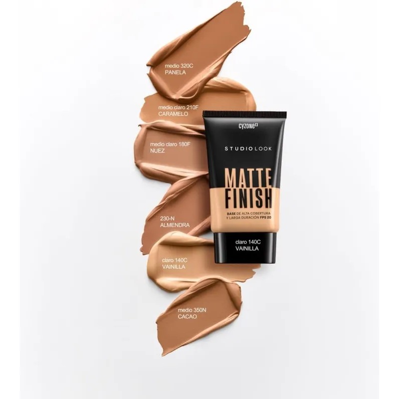 La base Studio Look de CYZONE es tu aliada perfecta para lograr un acabado mate natural, uniforme y de alta cobertura. Diseñada para todo tipo de piel, esta base corrige imperfecciones, empareja el tono y mantiene tu rostro con un look impecable hasta por 24 horas gracias a su tecnología Longwear.