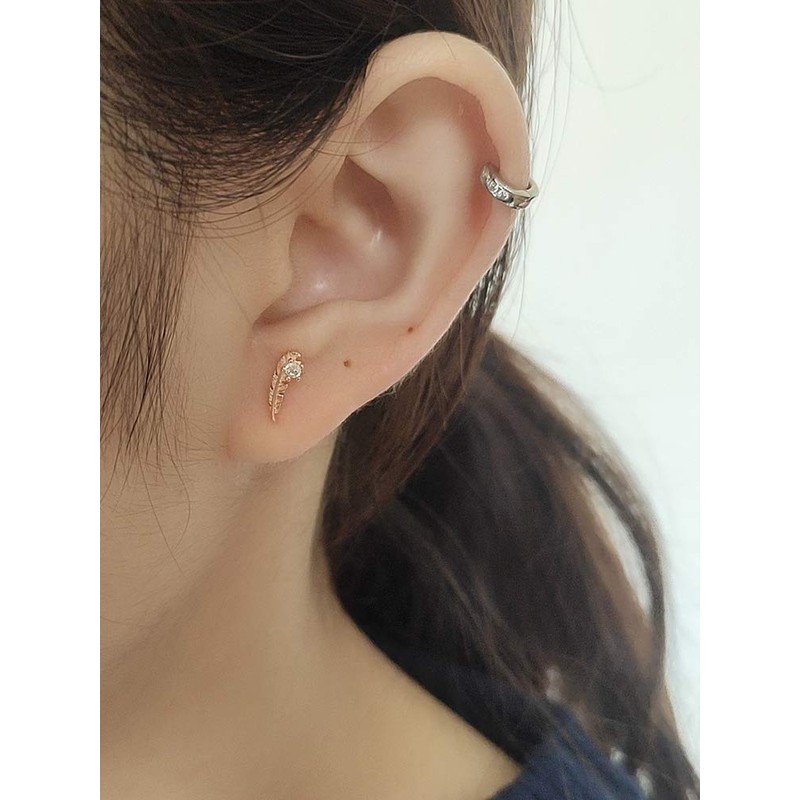 - Cute cz feather small stud earrings for women, Shiny rose gold/white gold plated. High quality plating & polished, long lasting. Size: 3.5mm*9.9mm.