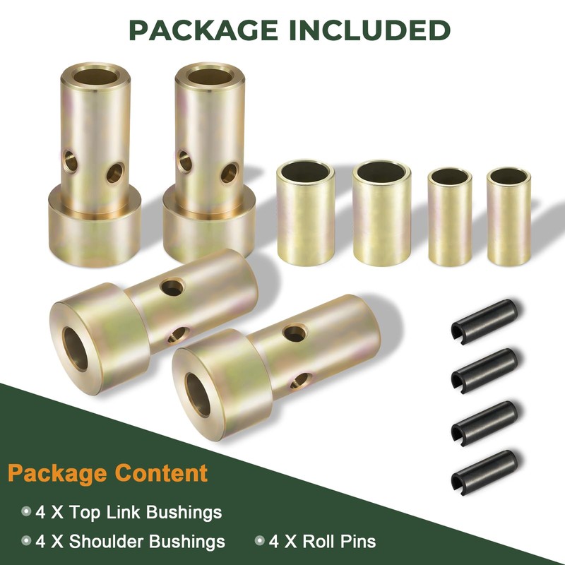 - Package Included: Includes 4 shoulder bushings, 4 top link bushings, and 4 roll pins—everything you need for a stable quick hitch setup