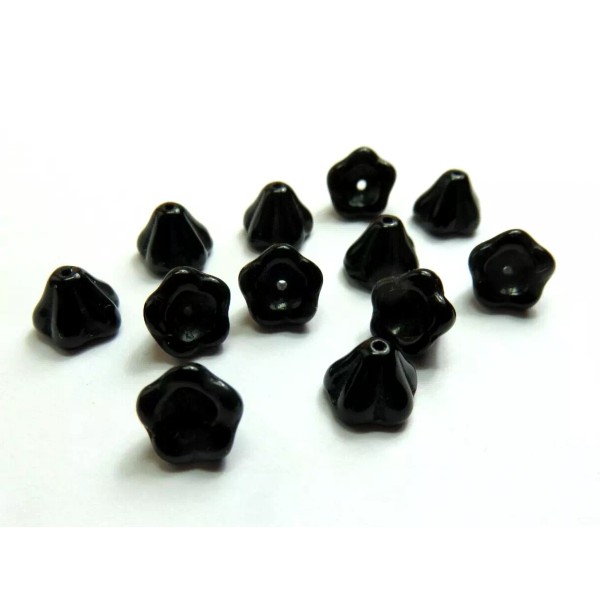 Czech 12 Pcs ~ BELL FLOWERS ~ 6mm x 8mm ~ JET BLACK ~ GLASS BEADS
