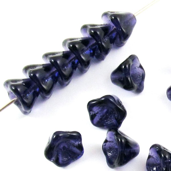 Czech Glass Bell Flower Beads-DEEP Violet Purple 6x8mm (25)